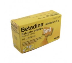Es una solución cutánea (sobre la piel) que se presenta en 10 envases unidosis de 5 ml. Es un antiséptico dermatológico de uso cutáneo. Betadine® unidosis 0,5 g se utiliza como desinfectante de la piel de uso general en: pequeñas heridas y cortes superficiales, quemaduras leves y rozaduras.