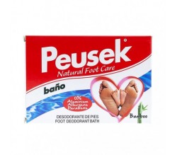 Peusek Baño Antitranspirante Pies en polvo. Es un tratamiento en dos pasos para el control del exceso de sudor y regular el funcionamiento de las glándulas sudoríparas. Consta de 2 sobres.