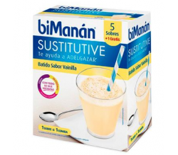 Bimanan sutitutive batido vainilla 6 sobres. Complemento alimenticio que sustituye una comida por una unidad. Funcionamiento testado y comprobado científicamente.