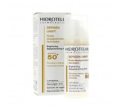 Hidrotelial Depigen Unify Despigmentante Iluminador SPF 50 es una solución que te ayudará a unificar la tonalidad de tu piel atenuando y aclarando las manchas del cutis.