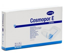 Cosmopor E Apósito Estéril 20x10cm 10ud para la protección de heridas, fabricados con non-woven, gasa muy absorbente con una capa antiadherente y con adhesivo de caucho sintético. Para el postoperatorio y para lesiones menores como por ejemplo primeros auxilios.
