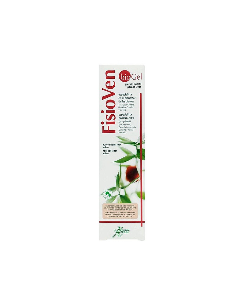 FisioVen bioGel es un preparado cosmético que cumple los rigurosos requisitos cualitativos que establece la normativa del Cosmético Biológico. La eficacia de este producto se debe a la sinergia funcional de los extractos liofilizados de Rusco y Castaño de indias con los extractos hidroalcohólicos de Vid roja y Centella, los cuales, disueltos en una solución acuosa de mucílagos de Malvavisco, aseguran la elevada concentración de sustancias funcionales.Por esta razón FisioVen bioGel da tono y elasticidad a la epidermis y reduce la sensación de pesadez de las extremidades inferiores, sobre todo al final de la jornada.El gel, gracias a que su fórmula incluye extracto de Chondrus crispus, un alga roja conocida con el nombre de Musgo de Irlanda que ejerce una acción gelificante natural, permite prescindir de los gelificantes convencionales derivados del petróleo y obtener un gel que, al formar una imperceptible película, mantiene en la piel, durante todo el día, las propiedades de las sustancias funcionales que contiene.Completa la fórmula el aceite esencial de Menta, con acción refrescante.