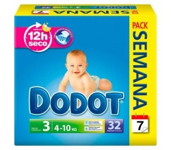 Dodot Pañales T.3 (4-10 Kgs) 32 Unds son un pañal-braguita ideal para niños activos que pesan entre 9 y 15 kilos. Es muy fácil de cambiar y mantiene al pequeño seco durante 12 horas.