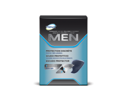 Tena Men Escudo Protector 14 Und es una protección extra fina, con un diseño único en negro, siendo el producto más discreto con una absorción Extra Light contra el goteo leve y de urgencia.