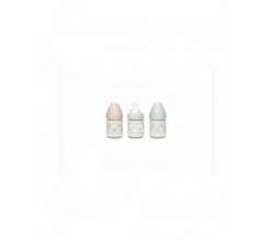 BIberón de boca ancha que incorporan una tetina de silicona de talla única con tetina redonda y de tres posiciones, con el sistema anticólico patentado por Suavinex.