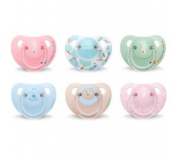 Su sistema protector evita irritaciones y rozaduras por acumulación de saliva en la delicada zona peribucal. El canal de circulación incorporado en la parte interior posibilita, no sólo la circulación de aire entre la piel y el chupete, sino también la expulsión de la saliva que pudiera quedar retenida.
