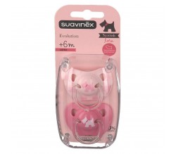 Chupete Rosa Tetina Anatómica +6m 2u Suavinex con tetina de látex presenta una textura y una forma anatómica que consigue adaptarse sin problemas al paladar del niño.