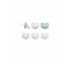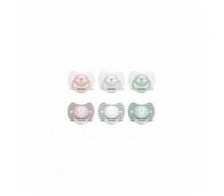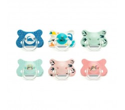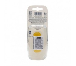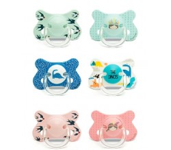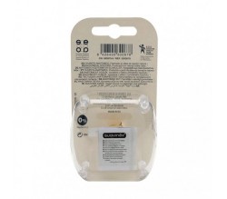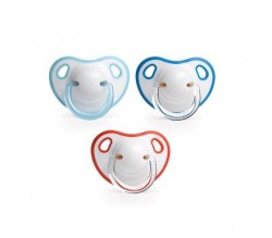 Su tetina fisiológica, al ser plana y simétrica, permite que ésta quede siempre bien colocada en la boquita del bebé ejerciendo la mínima presión sobre el paladar.Está fabricada en silicona médica, material blandito que no absorbe olores ni sabores, ni varía en la forma.